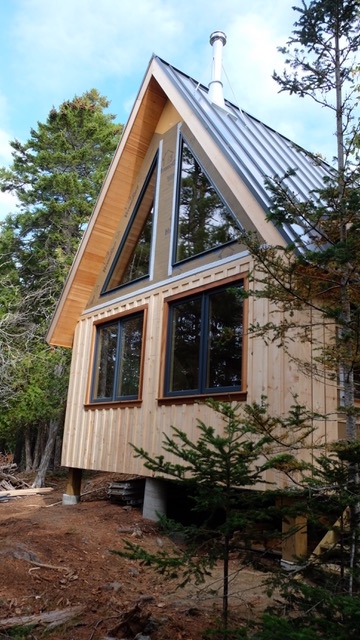 The roustabout raising went off without a hitch, and we ended up finishing the frame raising very late on Saturday night, to avoid an incoming storm on Sunday. The owners did a beautiful job finishing the cabin out themselves, as you can see in the photos below.