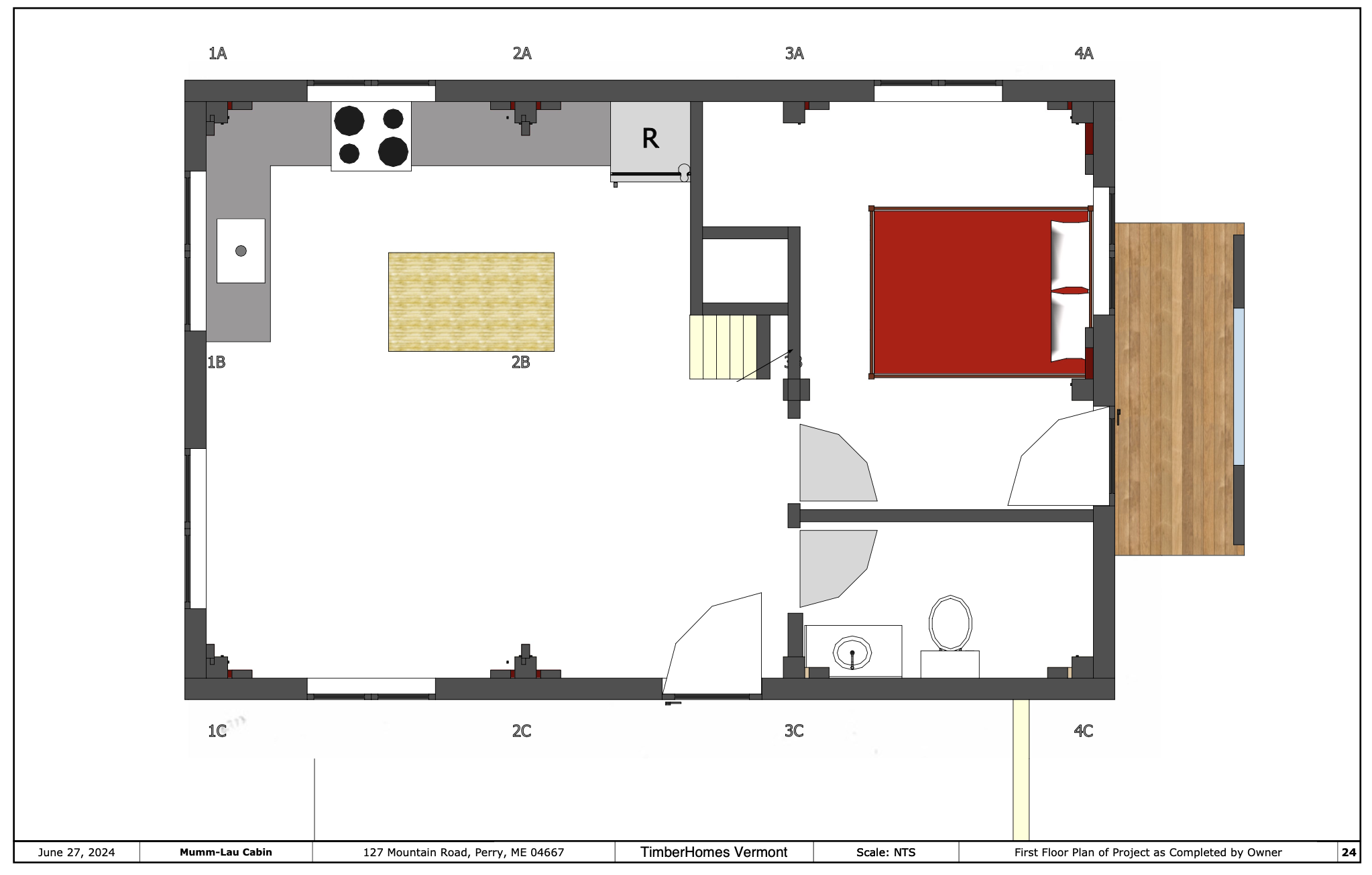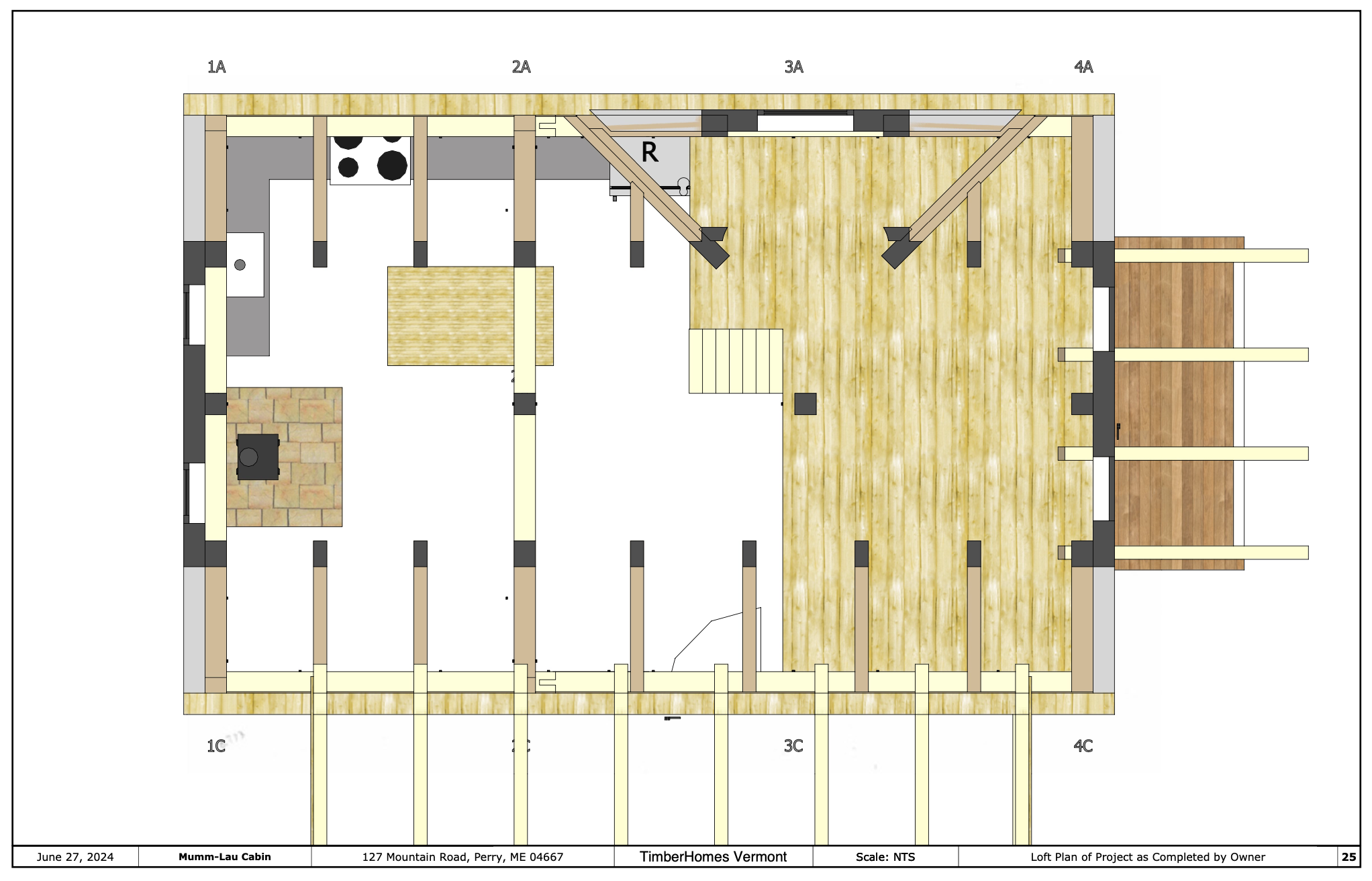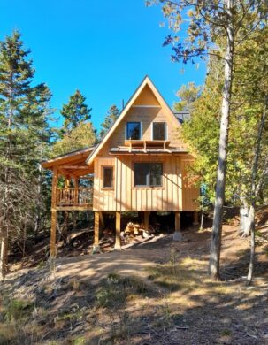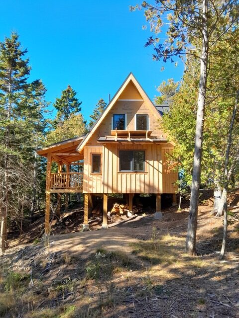 In the summer of 2024, four TimberHomes crew members packed a tight little bundle of timbers onto a long trailer and headed to Downeast Maine. These four amigos were headed to Perry, Maine, a small town on a cove off Cobscook Bay, itself an inlet to the larger, remarkable Bay of Fundy. In tow, they had the couple dozen timbers needed to assemble a sweet little 18′ x 28′ cabin frame.