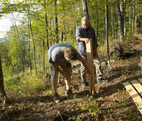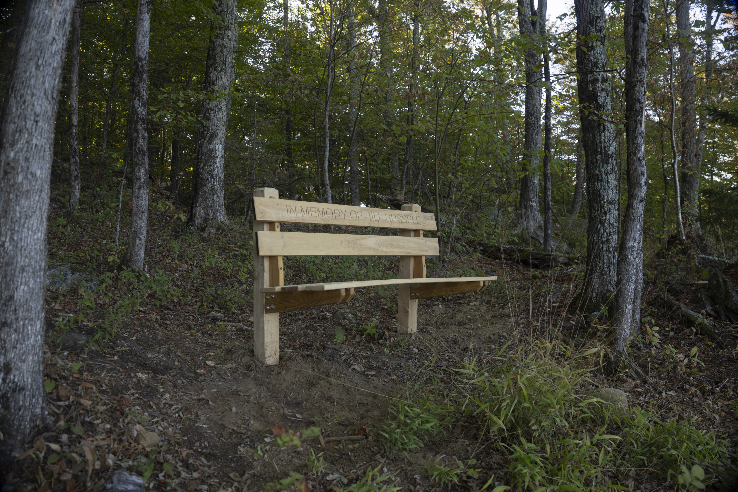 My childhood neighbor Bill Russell passed away last year, so it was meaningful to memorialize him with our one of Locust Benches. While enjoying his later years on Long Meadow Hill Rd in Calais, Vermont, Bill and his wife Maureen allowed for the construction of a multi-use hiking and mountain biking trail which tours their property, near to the Robinson Ridge Trailhead.