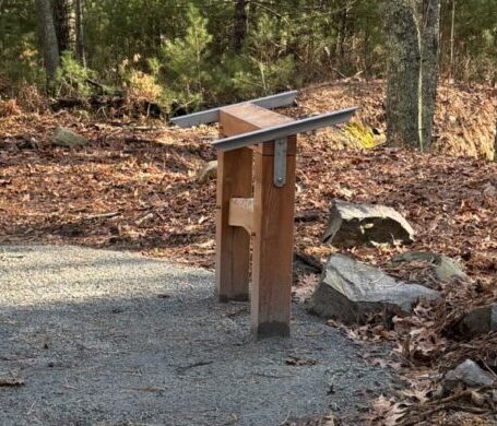A rugged and beautiful structure, our Interpretive Sign is a great addition to any park, museum, or municipality hoping to highlight a natural feature or historic building to the public. A curving cherry beam ties together the Black Locust posts with traditional mortise and tenon joinery. The timber members are all made from Black Locust, a naturally rot-resistant wood species from our northern New England forests. As part of the kit, we supply metal mounting brackets that easily attach to your display panel. If desired, TimberHomes Vermont can help facilitate design and production of your display. Placed low to the ground, the Interpretive Sign is easily viewed and enjoyed by all at your scenic overlook, riverside park, or museum.